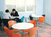 휴게 라운지를 조성하여 외부인과 만남의 장소 및 다목적 공부 공간으로 활용