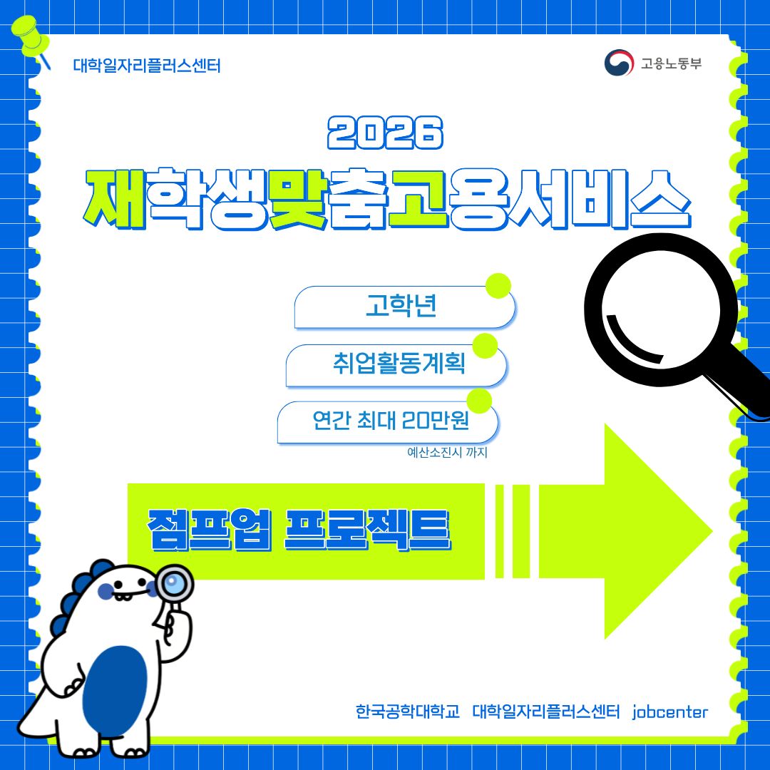 fnctId=bbs,fnctNo=1310 게시물 검색 검색하기 제목 작성자 RSS 2.0 212건, 현재페이지: 1/24 게시글 리스트 점프업 프로젝트 새글 작성일 2026.04.08 작성자 진로취업지원팀 조회 3 26'청년 엔지니어 육성사업'지역청년 채용연계형 인턴십 안내 새글 작성일 2026.04.08 작성자 진로취업지원팀 조회 8 26'점프업 새글 작성일 2026.04.07 작성자 진로취업지원팀 조회 3 26'빌드업 새글 작성일 2026.04.07 작성자 진로취업지원팀 조회 1 기업유형별 채용분석&준비방향 새글 작성일 2026.04.06 작성자 진로취업지원팀 조회 10 직무별 자소서 작성법 새글 작성일 2026.04.06 작성자 진로취업지원팀 조회 10 대일플센 뉴스 4월호 작성일 2026.04.01 작성자 대학일자리플러스센터 조회 27 2026대한민국 상생 채용박람회 작성일 2026.04.01 작성자 진로취업지원팀 조회 25 흥미진진MBTI진로 프로그램 작성일 2026.03.31 작성자 진로취업지원팀 조회 31 처음 124 1 2 3 4 5 6 7 8 9 10 다음 페이지 다음 끝
